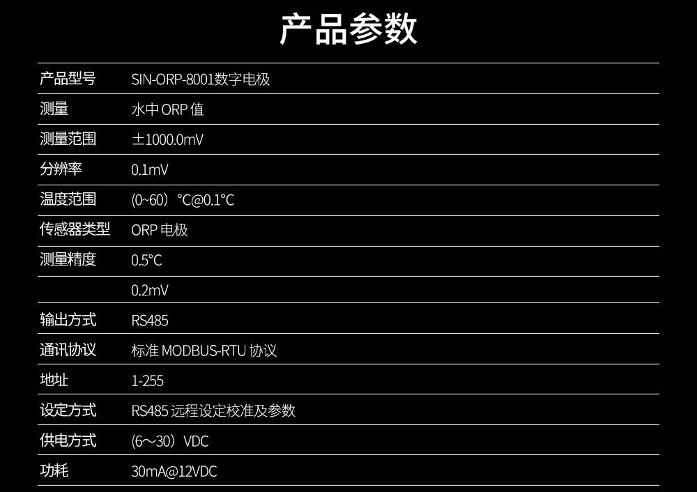 簡要描述:ORP 數(shù)字式電極,帶數(shù)字接口(RS485*1),可用于測量量程范圍內(nèi)水溶液體系中 ORP 值的變化情況。