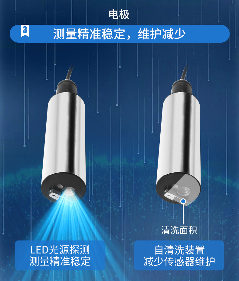 簡要描述:濁度/污泥濃度傳感器的原理基于組合紅外吸收散射光線法,應用 ISO7027 方法可以連續并精確地測定濁度或污泥濃度。